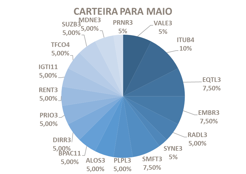 Para maio trocaremos o peso de alguns papéis, reduzindo a posição em Vale, enquanto elevamos em SYN.